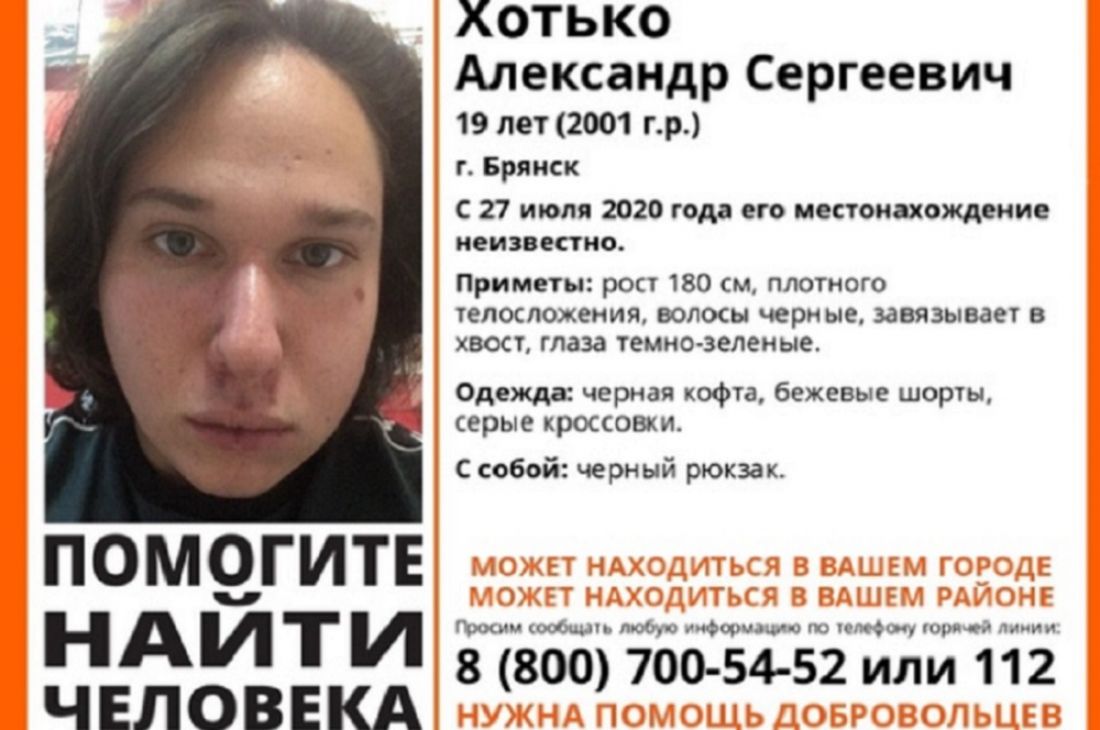 Волонтеры отряда «Лиза Алерт» сообщают о поисках 19-летнего жителя Брянска. Александр Хотько ушел из дома 27 июля. До сих пор у родственников нет информации о том, где находится молодой человек.