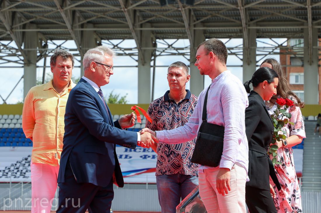 Во время поздравительной речи губернатор упомянул о том, что в регионе постоянно улучшается материальная база спортивных объектов. К примеру, в 2019 году было введено в эксплуатацию поле с подогревом в Каменке, сейчас там строят физкультурно – оздоровительный комплекс. В Нижнем Ломове реконструируют футбольное поле, осенью планируют построить ФОК открытого типа в Кузнецке.