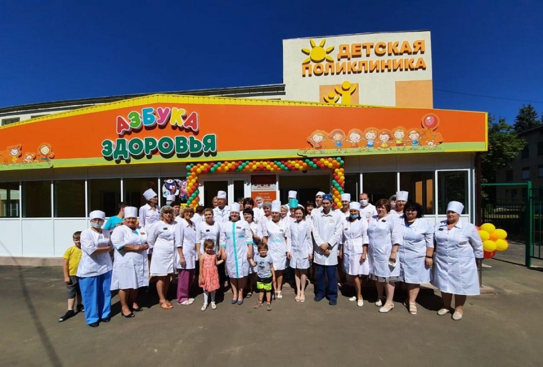 Медицинское учреждение оснащено современным оборудованием и теперь работает в режиме «Бережливой поликлиники». В вестибюле размещена «открытая регистратура» с картхранилищем, гардероб, инфомат, столы для пеленания грудных детей. Также на первом этаже расположено три педиатрических кабинета, лаборатория, рентген, принимают пациентов фтизиатр, психиатр и дерматолог.