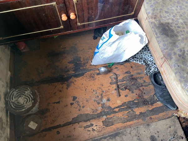 Кадры предоставила пресс-служба управления МВД России по Пензенской области. На них зафиксированы комната со следами крови на полу и орудие преступления.
