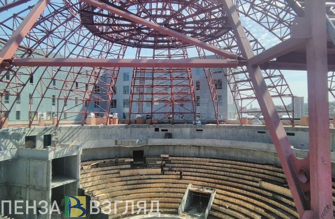 В Пензе строители цирка монтируют основание купольного пирога. Металлоконструкция готова на 90%.