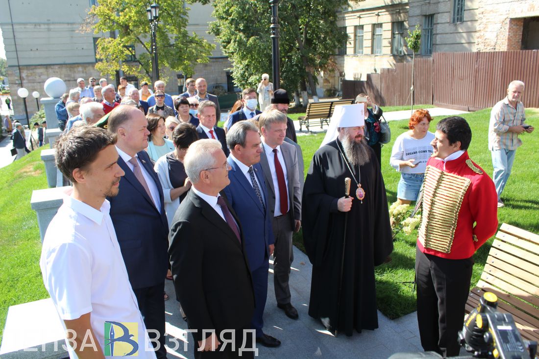 Глава региона прошел по всей зоне променада, где на каждой лавочке сидели знаменитые земляки, а точнее, изображавшие их актеры.