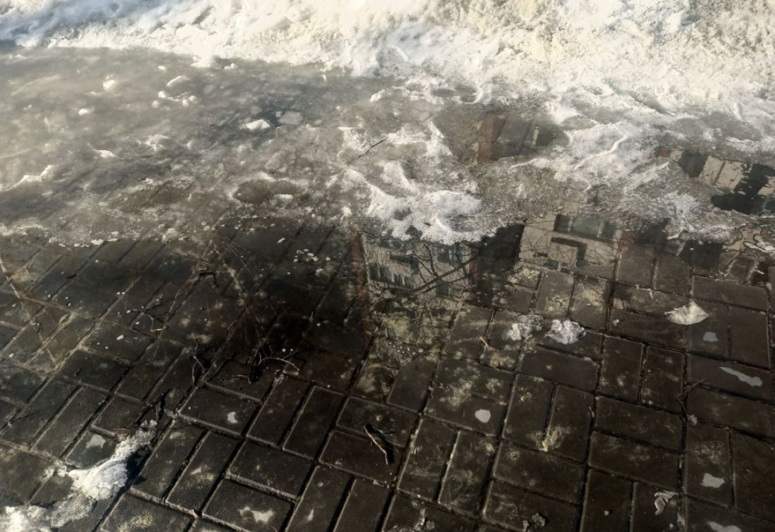 После снежной зимы по асфальту бегут ручьи, а у прямо у подъездов поджидают лужи. Обойти водные ловушки не всегда удается без жертв.