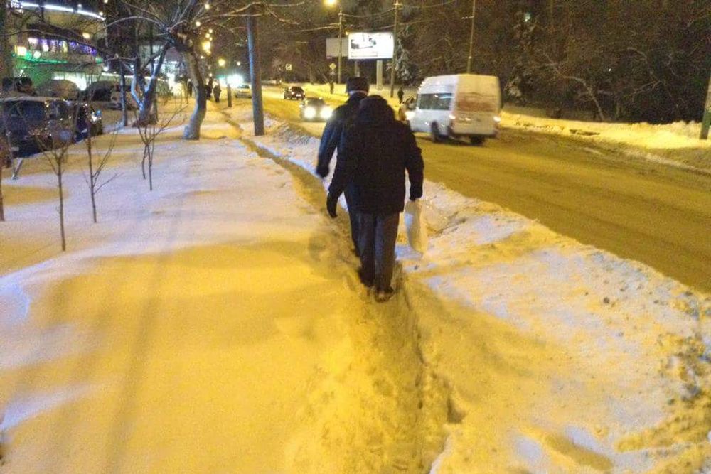 Приводя автомагистрали в надлежащее состояние, коммунальные службы в ряде случаев сгребали снег на тротуары, а на некоторых остановках общественного транспорта выросли снежные горы высотой с человеческий рост.