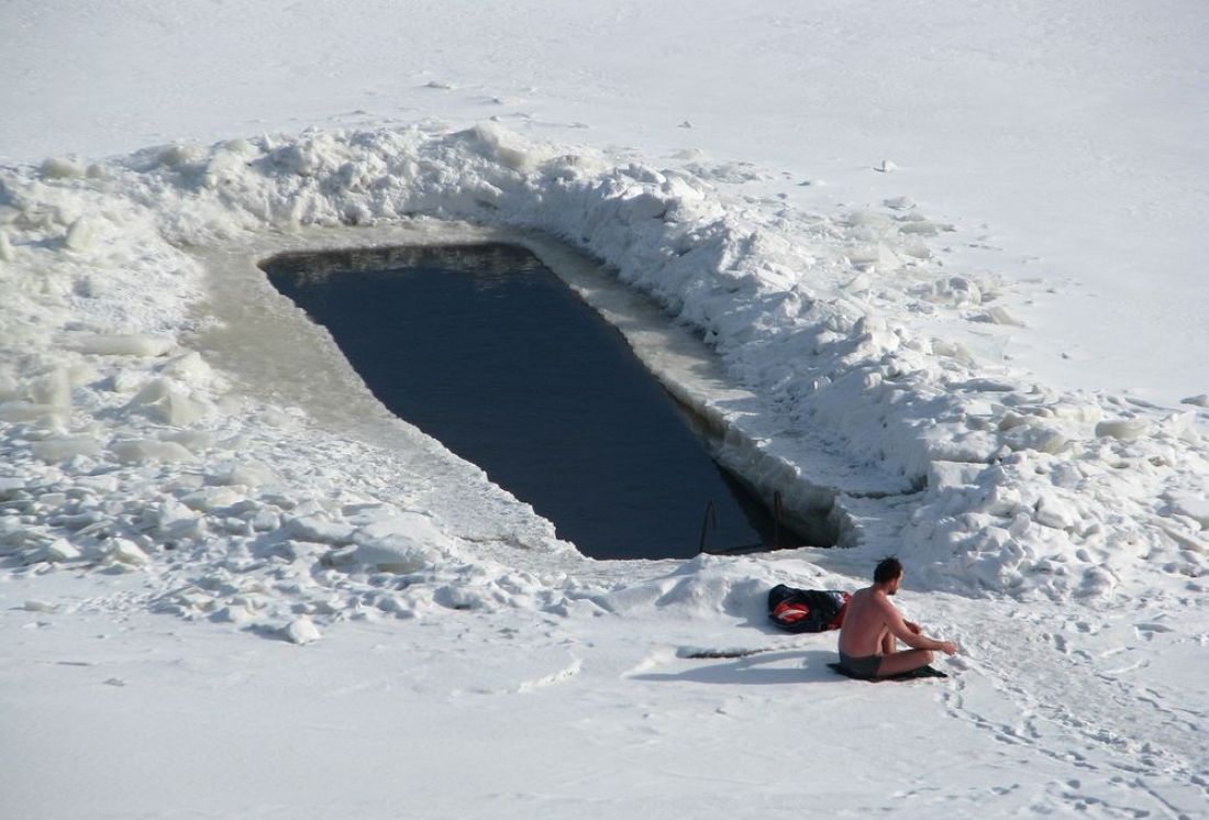 В воде не делайте резких движений. Несмотря на легкий шок, старайтесь все делать плавно и уверенно. Не находитесь в ледяной воде дольше минуты.