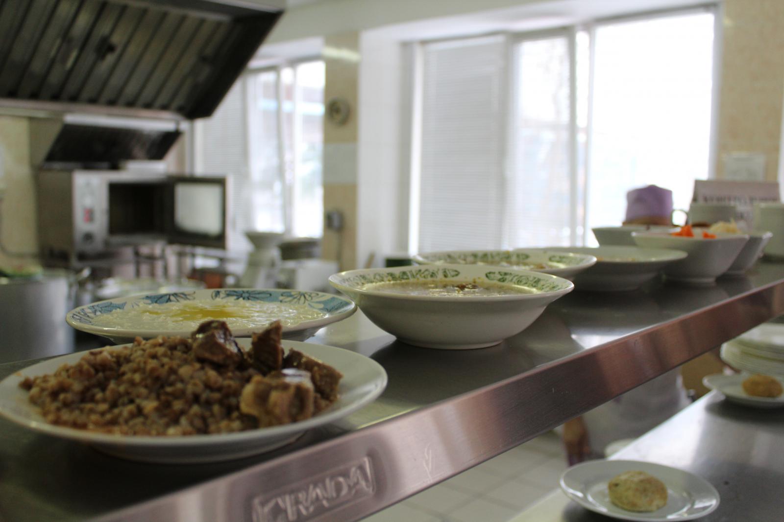 В это время сотрудники столовой продолжали накрывать на столы. Проверка-проверкой, а обед по расписанию.