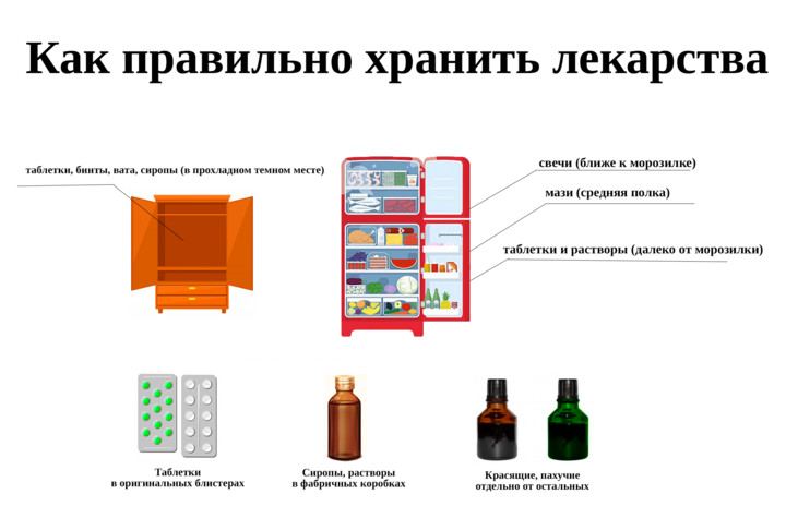 3. Часто лекарства держат в холодильнике, причем, кладут на полочки дверцы. На самом деле очень ограниченное количество средств нуждается в низкой температура, а дверца для их места дислокации и вовсе не подходит, так как при открывании она больше всего страдает от теплого воздуха комнаты. В холодильнике нужно держать ампулы, мази, свечи – только в том случае, если производитель предполагает такое хранение выпускаемых им средств!