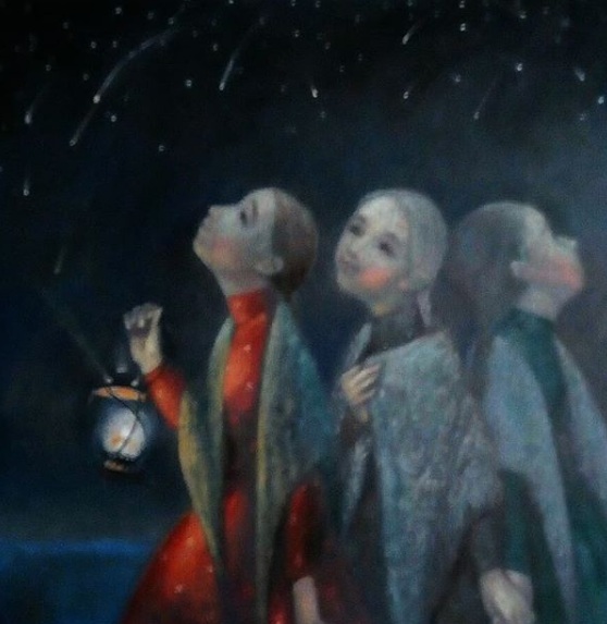 - Ползу и работаю. Сейчас, когда нет новых сюжетов, я начинаю вспоминать старые, перерабатывать их, с другого ракурса на них смотреть. Лет 10 назад было неприемлемо, но сейчас я думаю – это же мои сюжеты, это же я придумала. Сейчас жизнь у меня стабилизировалась, это какое-то счастье. У меня с октября новогоднее настроение. В этом году вовремя выпал снег, выхожу из дома и просто радуюсь, аж душа поет – снег идет, снежинки так красивы, так совершенны. И новые сюжеты появились, в том числе и «Успей загадать желание». Картина очень дорога тем, что это новый сюжет. Сначала у меня должна была быть одна девочка, потом думаю: как это она одна? Вторую нарисовала, потом думаю, нет, надо еще третью.