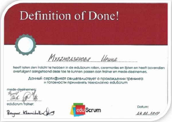 Технологию «Scrum» ввели для проектной деятельности, а «eduScrum» адаптировали в образование. Она меня очень заинтересовала. Чтобы овладеть ею в полной мере, я съездила на обучение в Казань. Теперь являюсь единственным учителем, работающим с технологией «eduScrum» в Пензе.