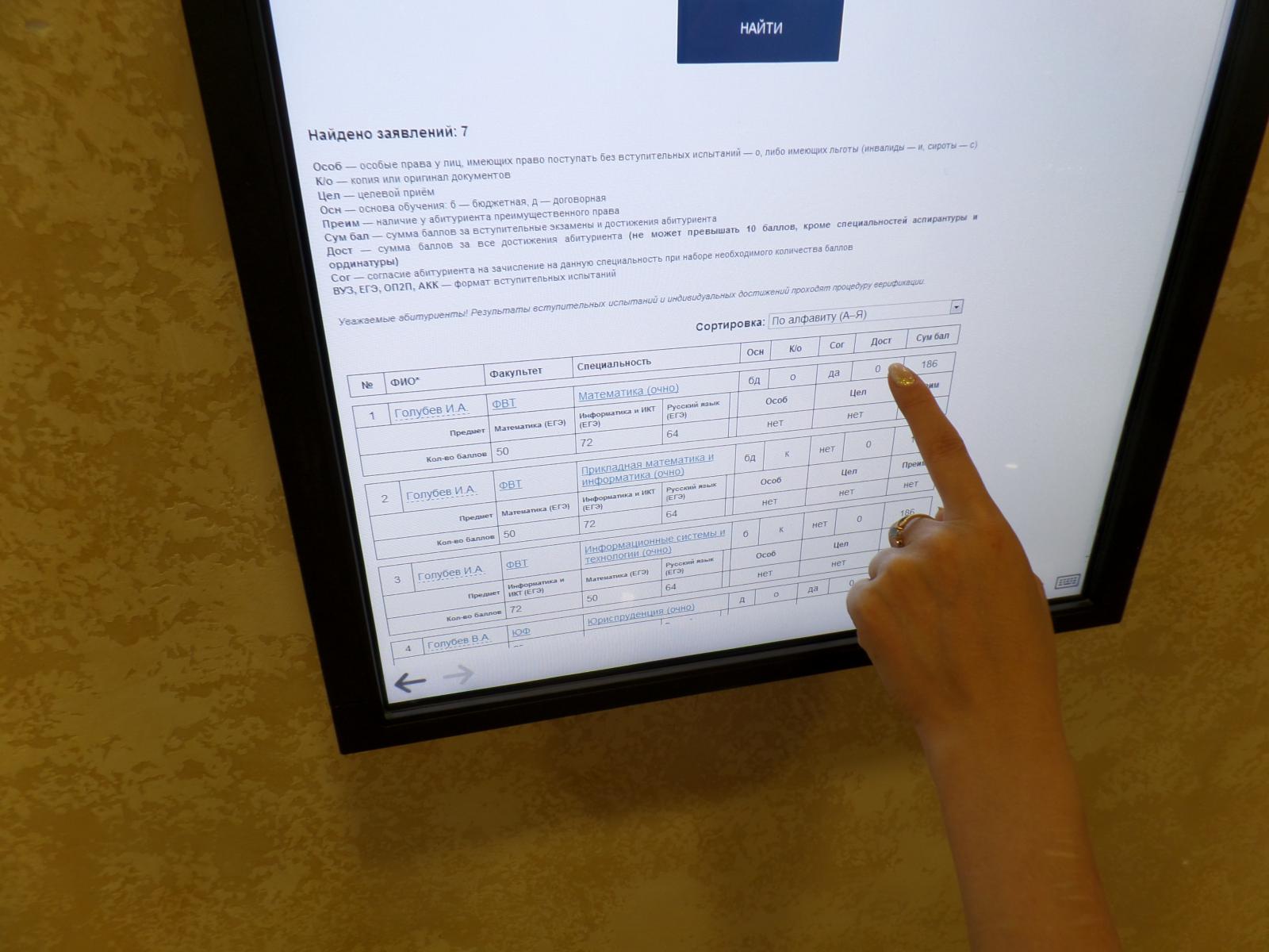 С прошлого понедельника ученики одиннадцатых классов стали массово подавать документы. На сегодняшний день у нас уже больше двух тысяч абитуриентов, в день документы подает около 350 человек, и этот поток ежедневно растет, так как многие ждали свои результаты экзаменов. Теперь все знают баллы, могут оценить желания и возможности, расставить приоритеты.