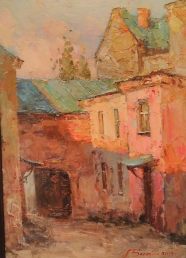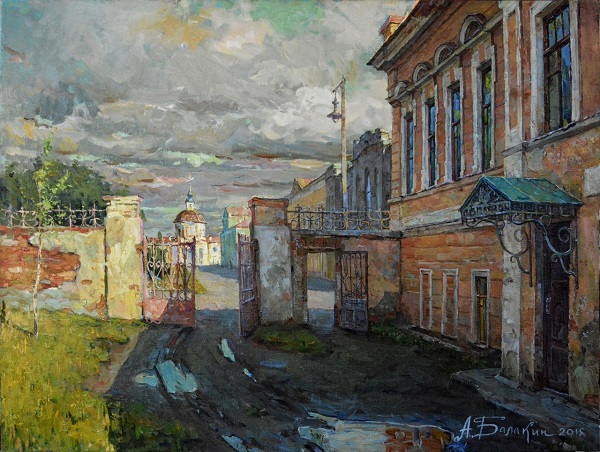 - На ней тоже изображена Пенза, но эта работа в Губернаторском доме не представлена. Начинал писать ее в 2009 году. Потом служба в армии, потом жизнь меня немного в другую сферу направила. Но в последние два года я достаю старые работы и начинаю их доделывать. Она одна из них. На ней изображен дворик за зданием МВД на улице Лермонтова. Сейчас в него без приглашения уже не зайти. Но было время, когда многие молодые художники хорошо его знали. При работе над картиной стояла задача сделать вид старой Пензы с видом на Никольскую церковь немного под другим углом, не так, как на всех известных фотографиях начала ХХ века. Дописал ее. Были и другие недописанные работы. Бывает так - рисуешь, и какой-то ступор наступает, картину приходится откладывать и доставать через полгода, чрез год. Некоторые работы пишутся очень долго.