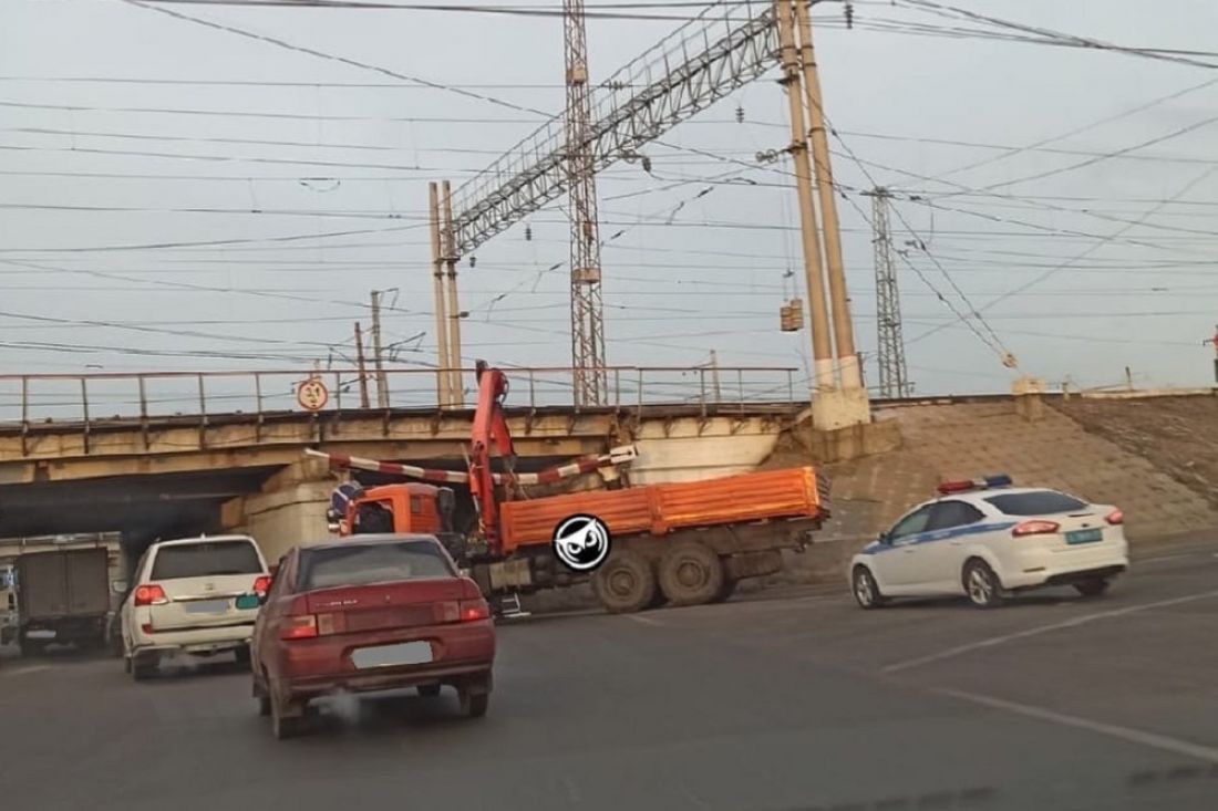 Перед железнодорожным мостом в Пензе снова возникла пробка из-за застрявшего грузовика