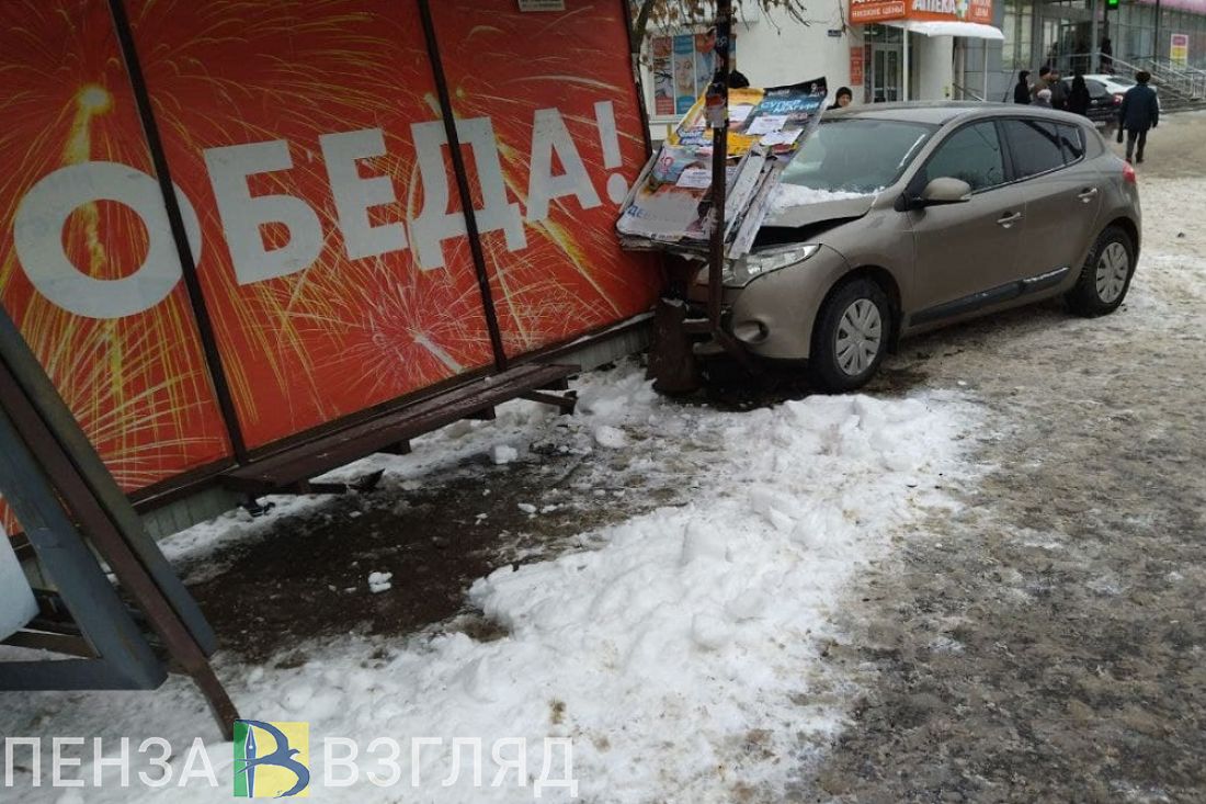 Появились новые фото с места ДТП, где иномарка врезалась в остановку в Пензе