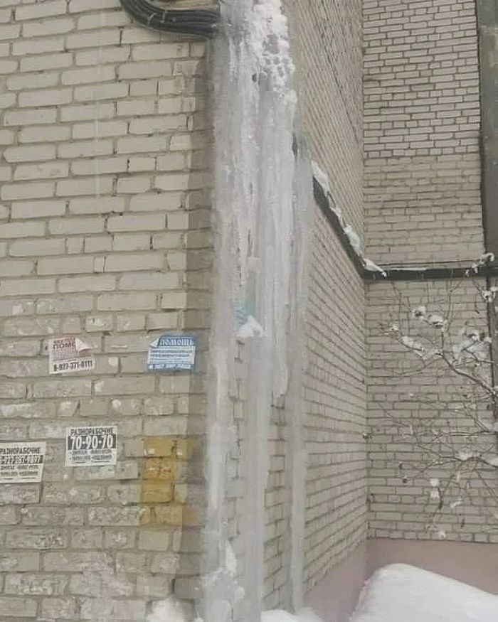 «В техническом помещении над аркой прорвало систему отопления. Горячая вода течет по сей день. Коммунальные службы игнорируют проблему. Вся стена арки сырая. Над аркой жилые этажи. Вода горячая струится по стене, на морозе замерзает наш «водопад», - рассказывает автор поста, опубликованного в инстаграм-аккаунте «Пенза Решения».