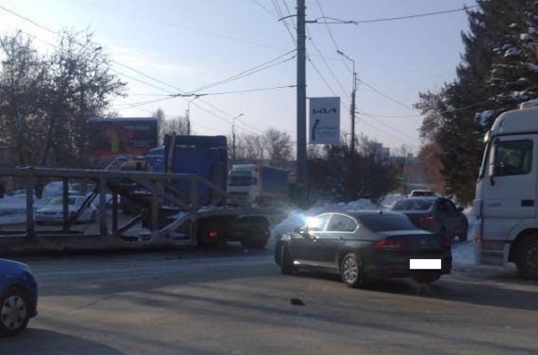 Инцидент на пересечении улиц Беляева и Кирпичная произошел в начале двенадцатого часа дня. Там столкнулись автовоз и маршрутка. Снимком с места аварии житель Пензы поделился в социальной сети.