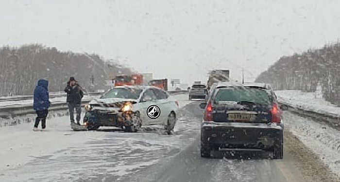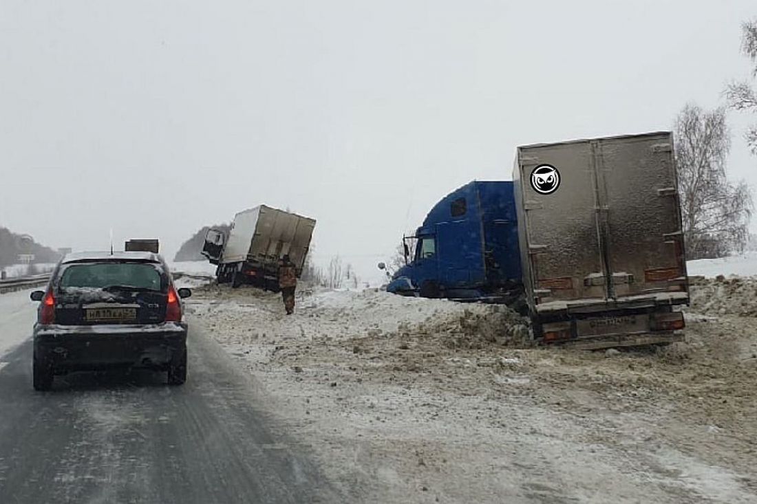 Опасная авария произошла в понедельник утром на федеральной трассе «Урал». Фотографии с места происшествия были опубликованы в социальной сети «ВКонтакте».
