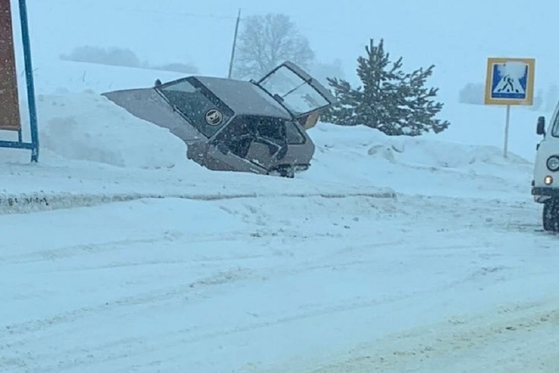 В Пензенской области легковая машина вылетела в заснеженный кювет