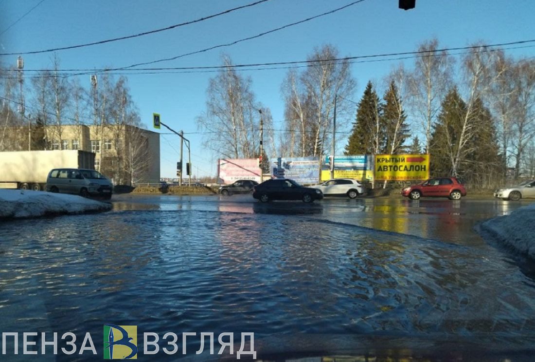 В Пензе автомобилистам приходится преодолевать огромную лужу