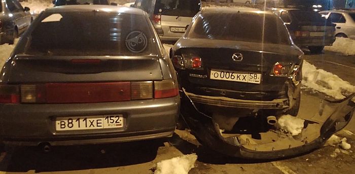 Судя по фотографиям, «Mazda» получила серьезные механические повреждения: у нее отвалился задний бампер, помят кузов. Вмятины заметны и на боку стоящего рядом «ВАЗа». Сколько всего автомобилей пострадало от действий «гонщика», не уточняется.