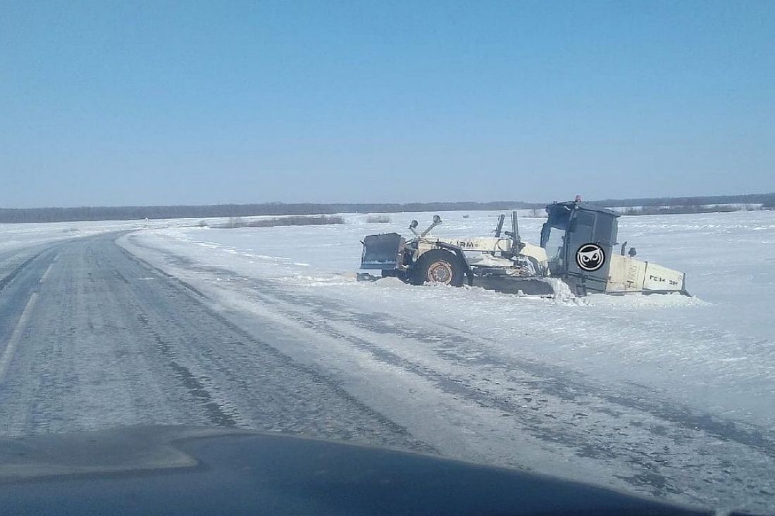 На трассе в Пензенской области в заснеженный кювет улетела снегоуборочная техника