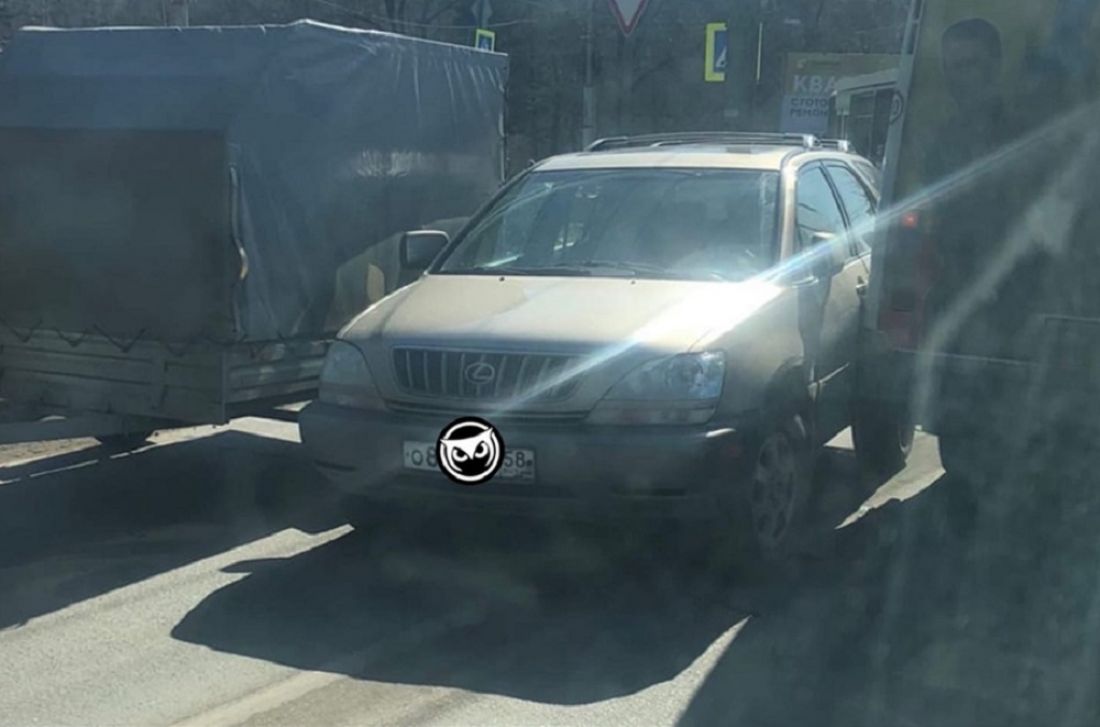 В ДТП угодила машина марки «Лексус», которая столкнулась с микроавтобусом. Удар был несильным, а потому транспортные средства отделались царапинами. При этом иномарка оказалась зажатой между другим участником ДТП и прицепом соседней машины.