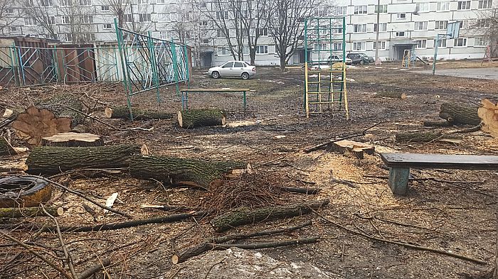 Во дворе на Минской улице Кузнецка на днях были вырублены ветлы, что вызвало возмущение у местных жителей, о котором они сообщили в социальной сети «ВКонтакте».