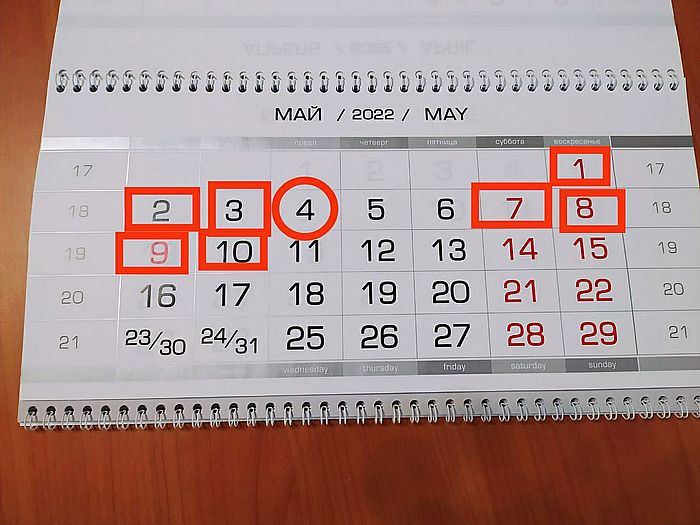 5 и 6 мая жителям Пензенской области придется выйти на работу, после чего их снова ждет отдых - 7, 8, 9 и 10 мая.