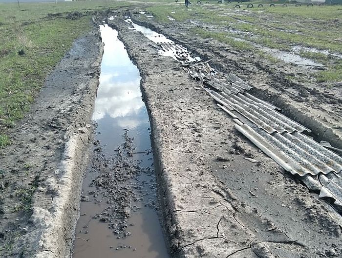По его словам, местная администрация на происходящее никак не реагирует и внимания на проблему не обращает. Инициативу в свои руки попытались взять обладатели излишков волнистого шифера, которые «укрепили» одну из грязных колей строительным материалом. На вторую колею шифера на момент съемок не хватило, и по ней вполне можно судить о состоянии сельской дороги.