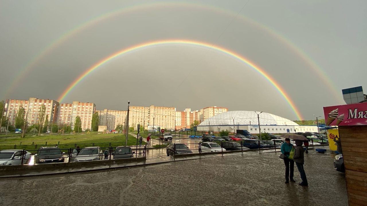 Двойная полная радуга изогнулась над городом на Суре в седьмом часу вечера и была видна практически из любой точки областного центра.