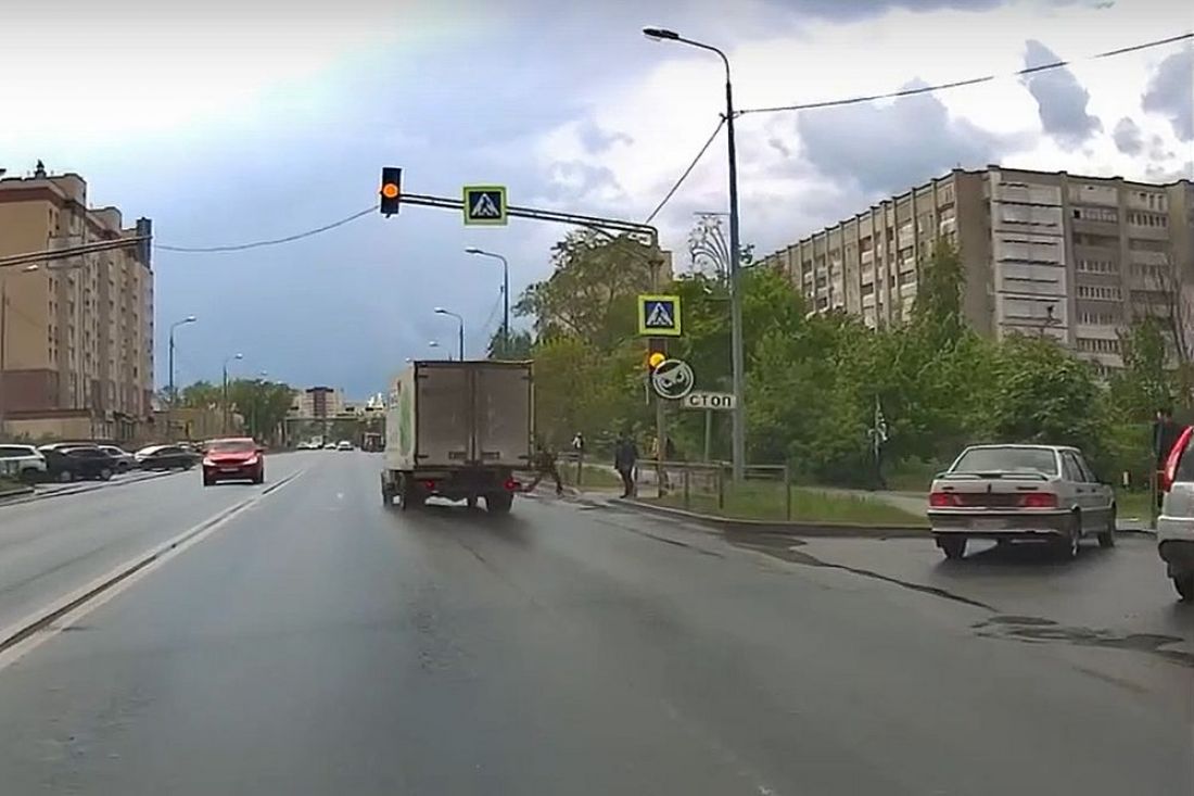 Опасный эпизод зафиксировала камера видеорегистратора, установленного на автомобиле, проезжавшего по улице Антонова в Пензе. Здесь школьник едва не попал под колеса грузовика.