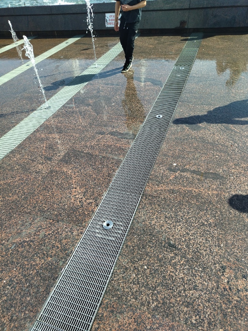 Читатели прислали видео, на котором видно, что часть форсунок в зоне, которая расположена вне основной чаши фонтана, не работает.