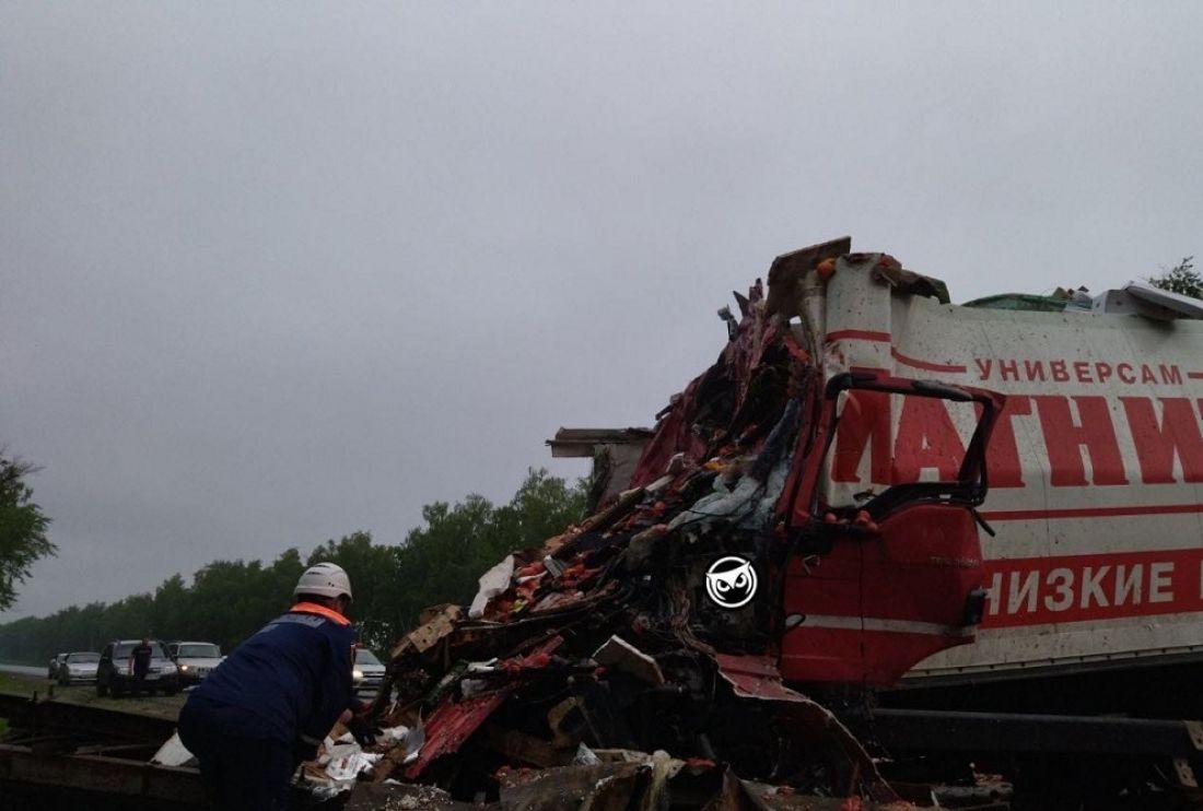 На снимках, размещенных в сообществе, запечатлены последствия аварии - трасса была перегорожена фурой, груз, который она перевозила, оказался на дороге, на месте работали спасатели, сотрудники ГИБДД. Обстоятельства случившегося устанавливаются.