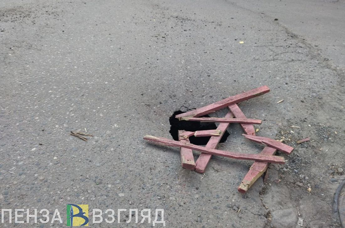 Провал на дороге опасен как для водителей, так и для пешеходов.