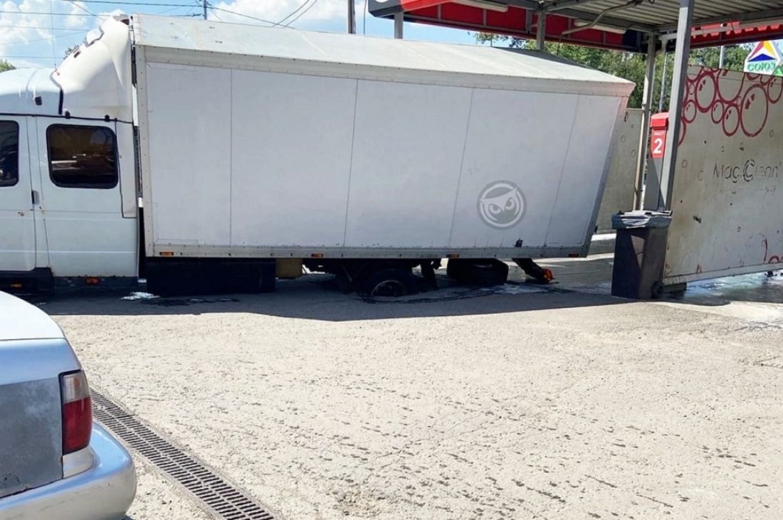 В центре Пензы грузовик колесами «ушел» под асфальт