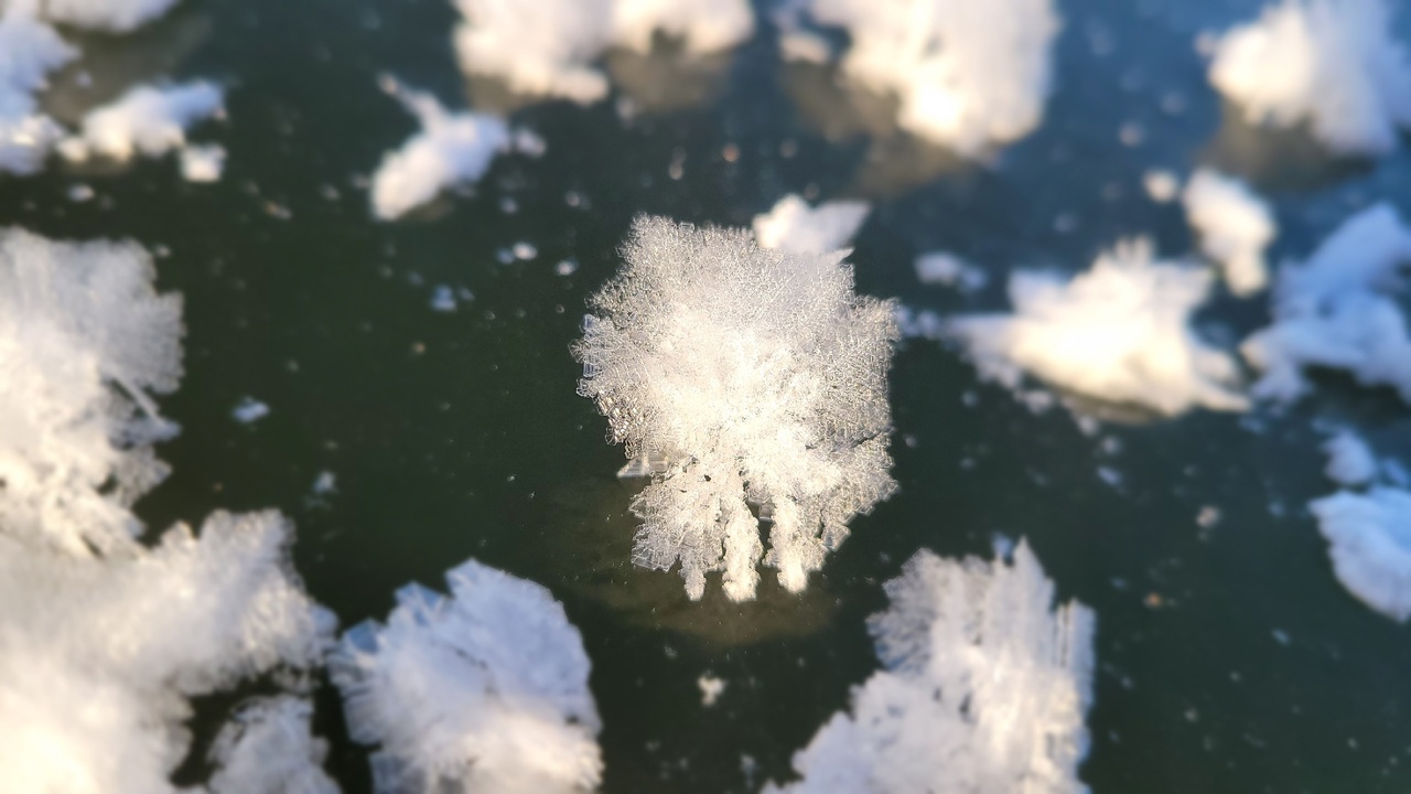 Ученые называют это редкое погодное явление «ледяными цветами». Оно представляет собой причудливые наросты, которые образуются на замерзшей поверхности водоемов лишь при определенных условиях.