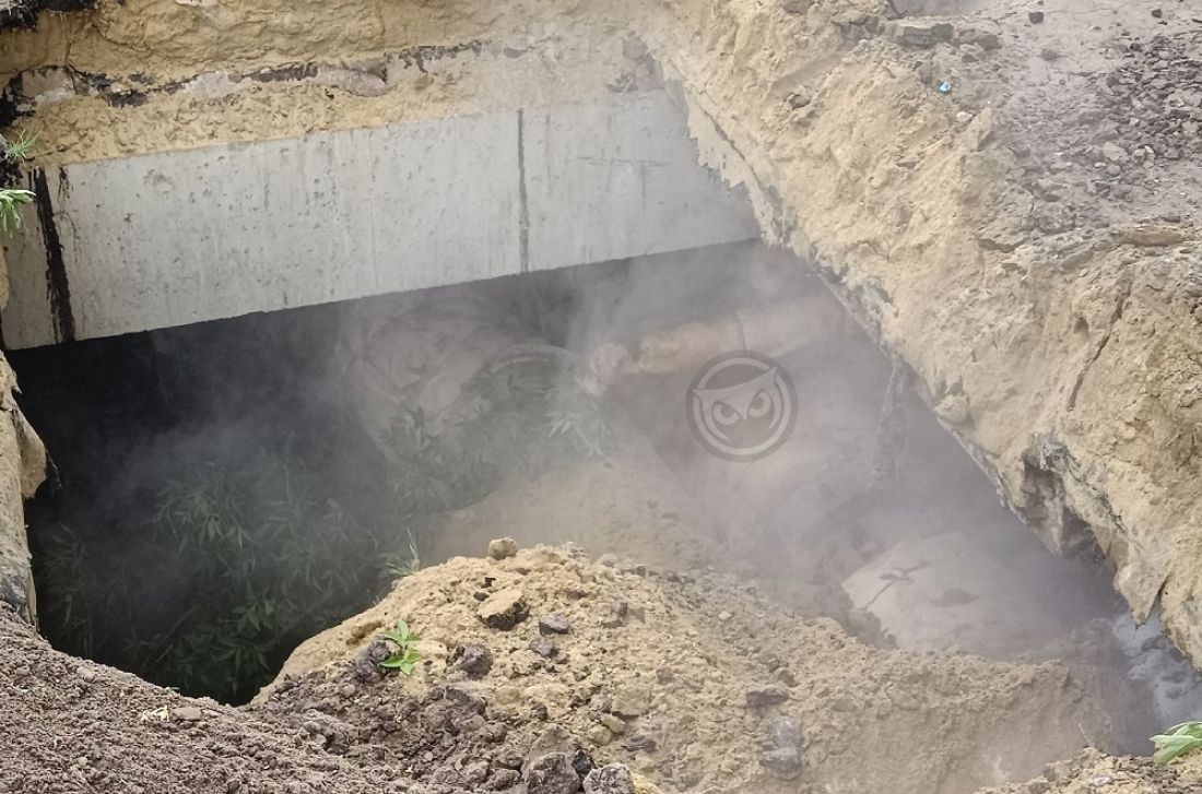 На улице Аустрина машина провалилась в яму, из которой идет пар