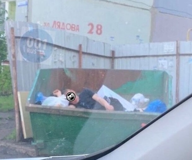На снимке, размещенном в группе «Сова Пенза авто» социальной сети «ВКонтакте», запечатлена площадка для сбора отходов возле дома №28 по улице Лядова. В контейнере среди мешков с мусором лежит мужчина в футболке и штанах. При каких обстоятельствах он оказался там, неизвестно.