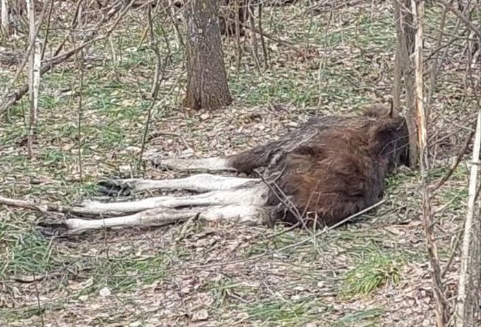 В лесном массиве города Заречный был найден труп дикого животного. Причина его гибели неизвестна.