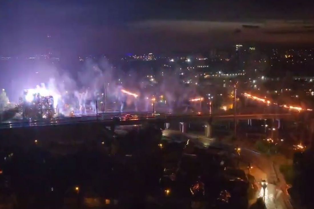 Искры сыпались по всей длине моста, сопровождаемые кратковременной дымовой завесой. Сведений о пострадавших из-за опасных эффектов пока не поступало.