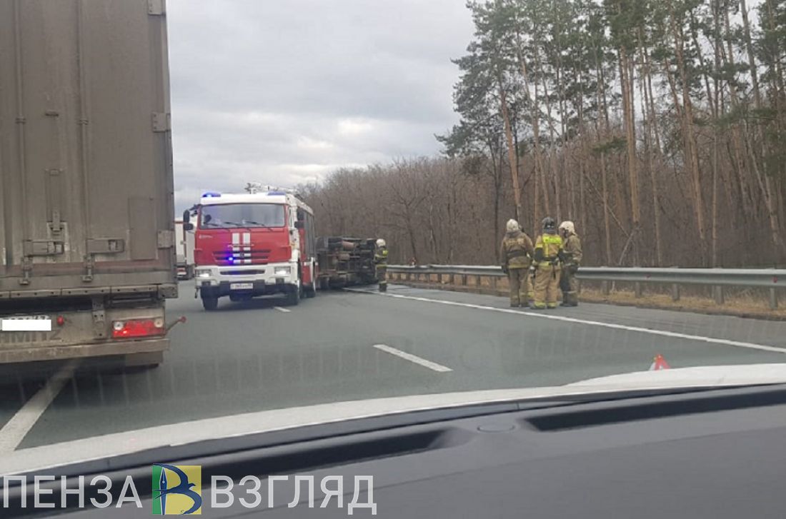 К месту опрокинувшейся машины под Пензой прибыли спасатели. Фото