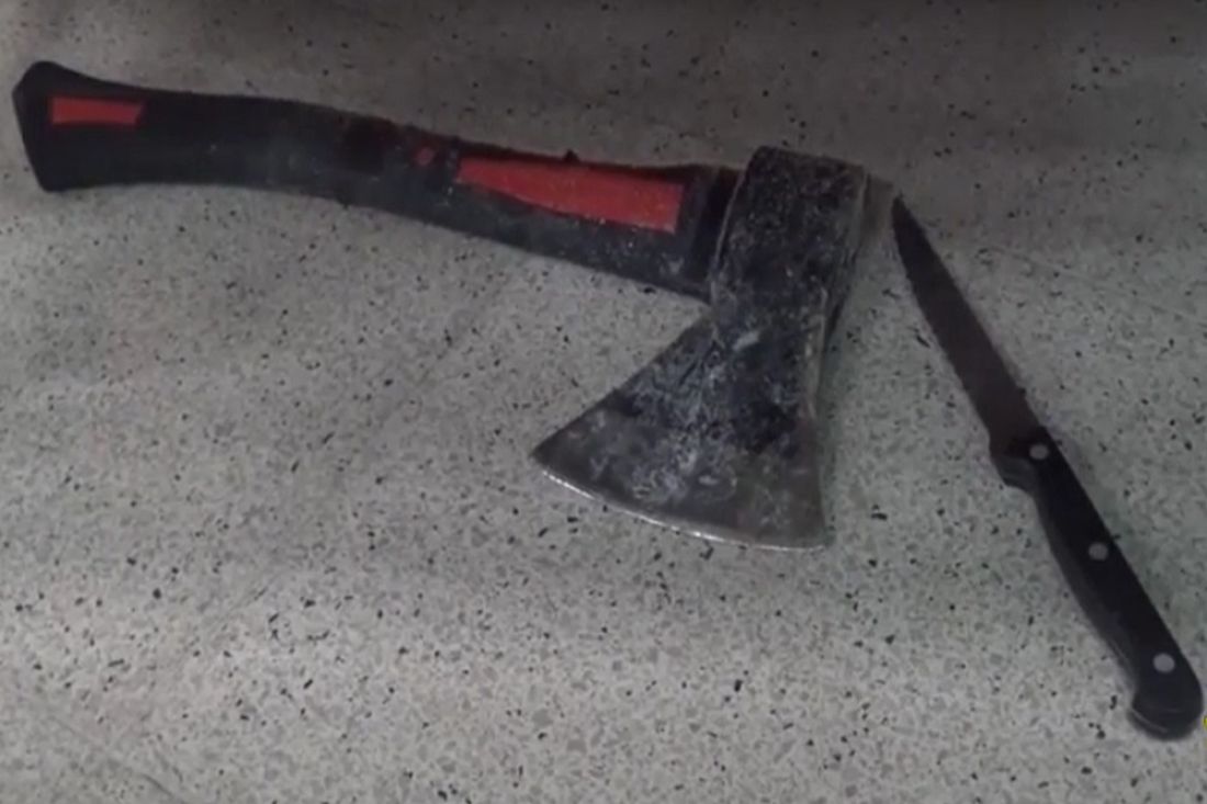 Оперативно прибывшие сотрудники полиции задержали правонарушителя на месте преступления. В ходе личного досмотра у задержанного обнаружены и изъяты топор и нож.