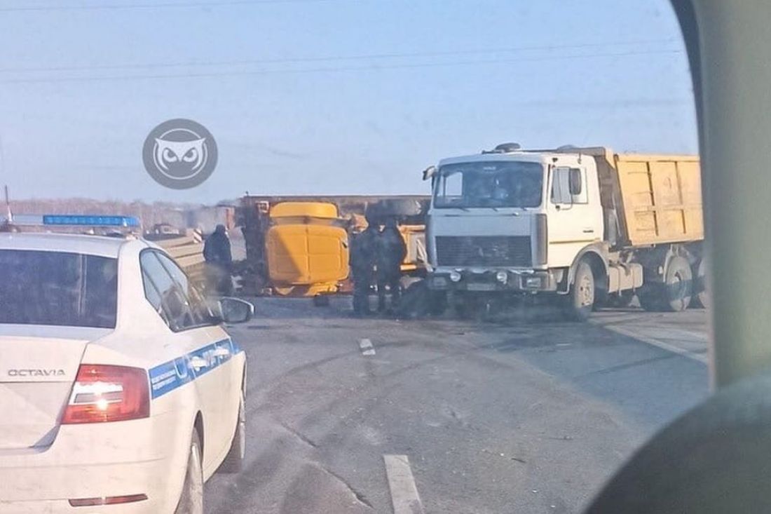 В субботу на трассе, соединяющей Пензу и Тамбов, произошла авария. По невыясненным пока причинам опрокинулась на бок специальная техника.