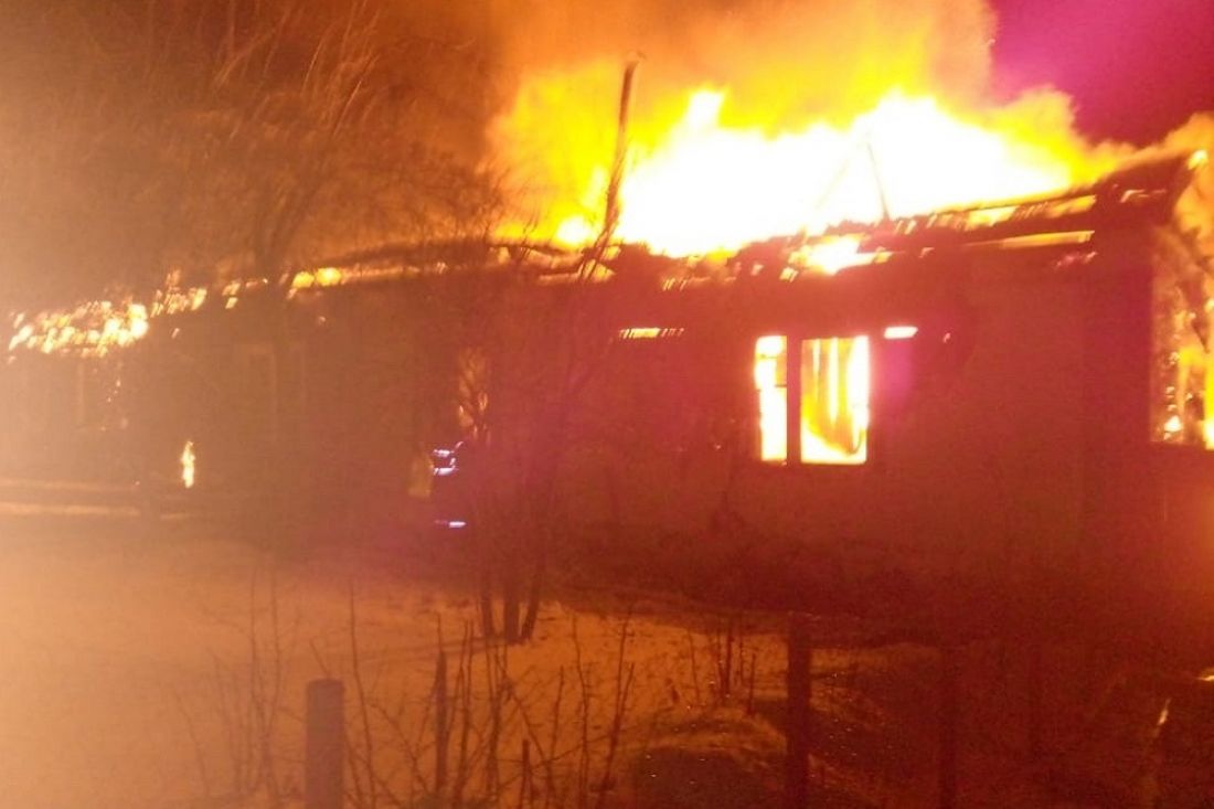 Вечерний пожар в Городище уничтожил двухквартирный дом и баню