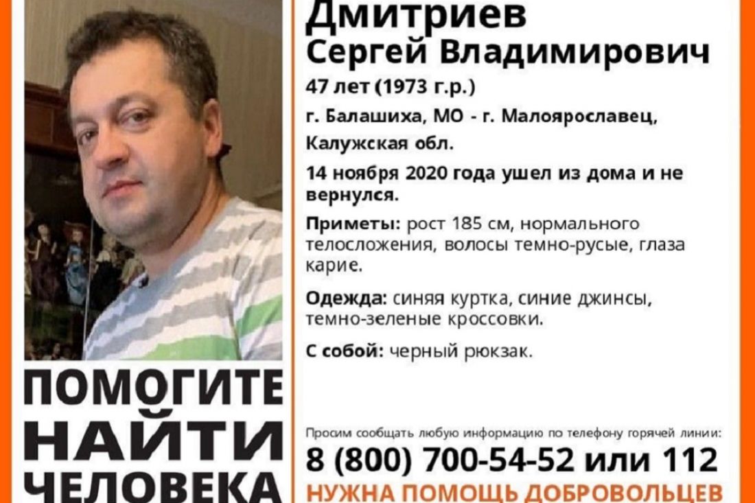 В городе Балашиха Московской области пропал 47-летний мужчина. Сергей Дмитриев ушел из дома 14 ноября. До сих пор у родственников нет информации о его местонахождении.
