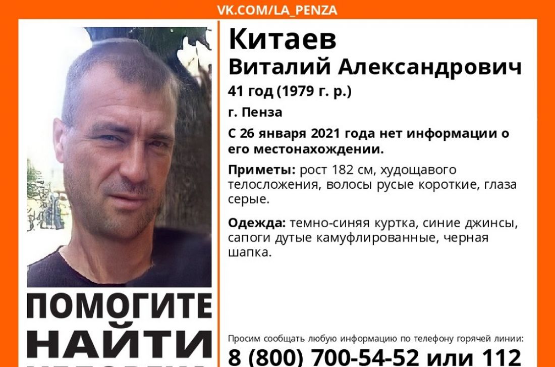 В социальной сети появилась информация об исчезновении 41-летнего жителя Пензы Виталия Китаева.