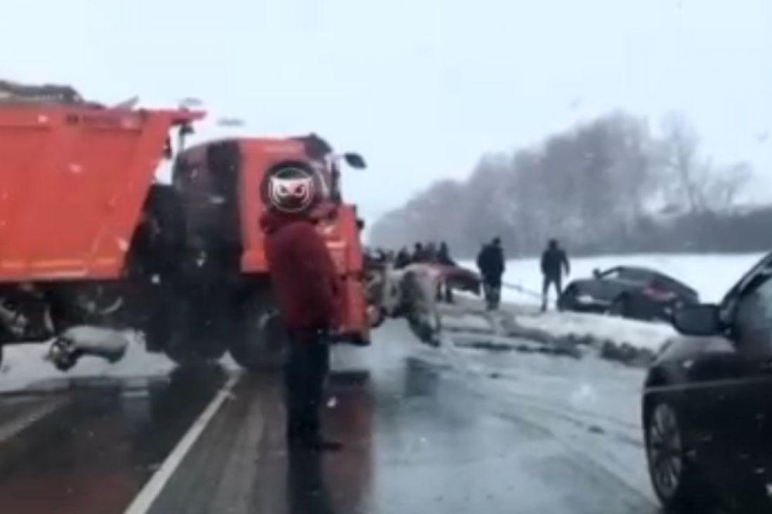 Сложные погодные условия могли стать причиной аварии, случившейся сегодня утром на дороге, соединяющей Пензу и Тамбов. Видео с места событий появилось в социальной сети «ВКонтакте».