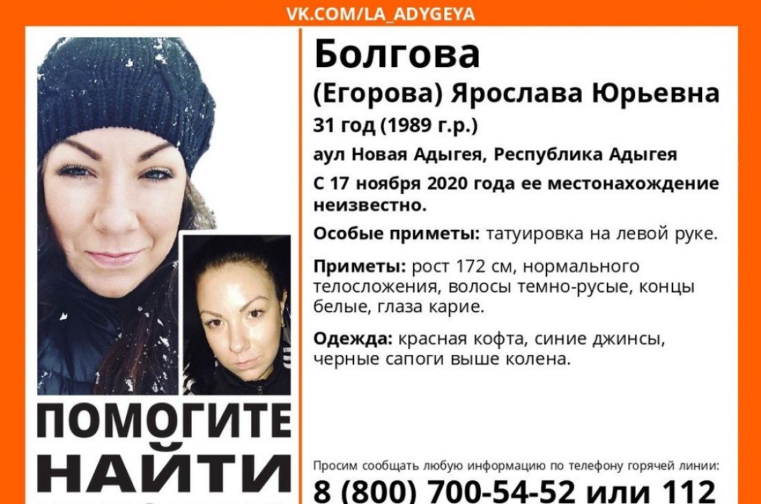 В Пензенской области может находиться пропавшая 31-летняя жительница Республики Адыгея Ярослава Болгова.