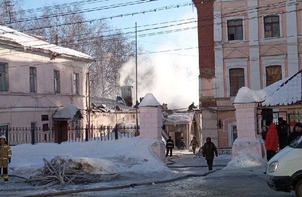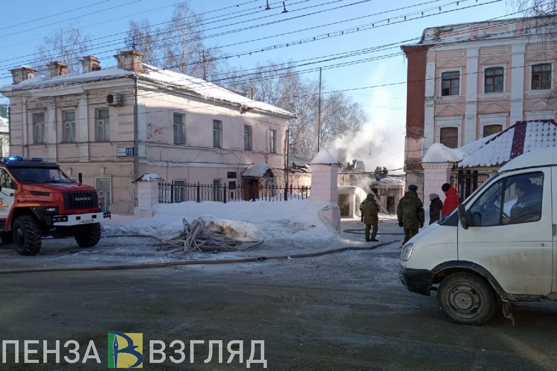 В центре Пензы продолжается ликвидация последствий пожара на улице Кирова. Вечером 23 февраля огонь охватил одно из зданий на территории военного госпиталя.