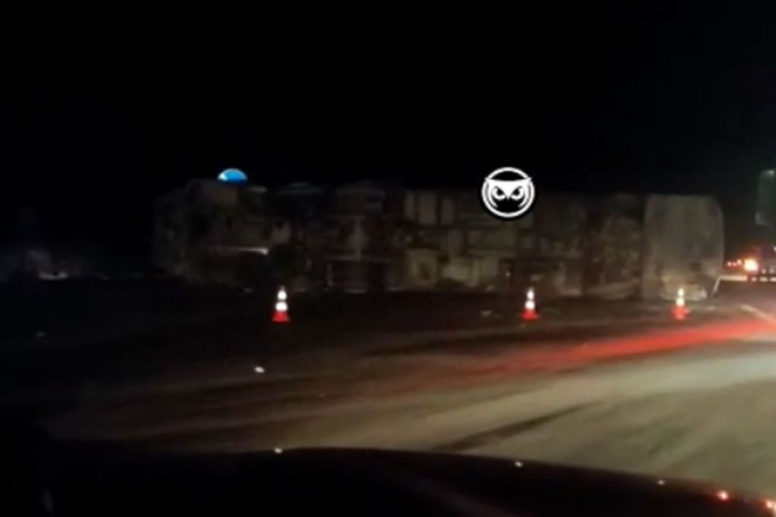 Опубликовано видео с места аварии под Рязанью, где перевернулся автобус из Пензы.