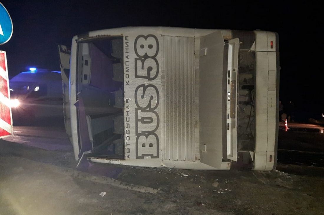 Инцидент случился сегодня, 17 марта, в половине второго часа ночи на 226-м километре федеральной трассы М-5 «Урал» в границе Спасского района Рязанской области. Установлено, что за рулем рейсового автобуса находился мужчина 1971 года рождения. По предварительной информации, он не справился с управлением и допустил опрокидывание автобуса на проезжую часть.